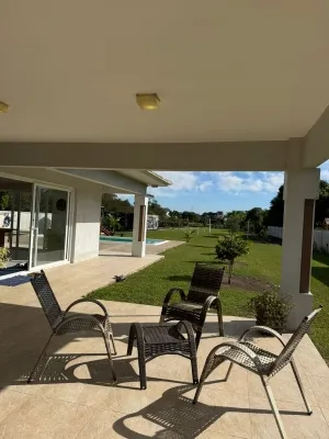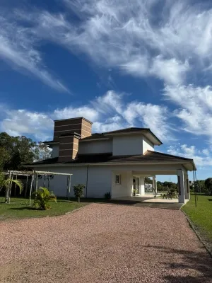 - 3 suítes espaçosas para o seu descanso e privacidade, sendo uma com hidromassagem e todas com vista para o rio - Total de 5 banheiros bem equipados, garantindo conforto para toda a família - Ampla garagem com capacidade para 3 veículos - 350 metros quadrados de área total, oferecendo generosos espaços internos e externos